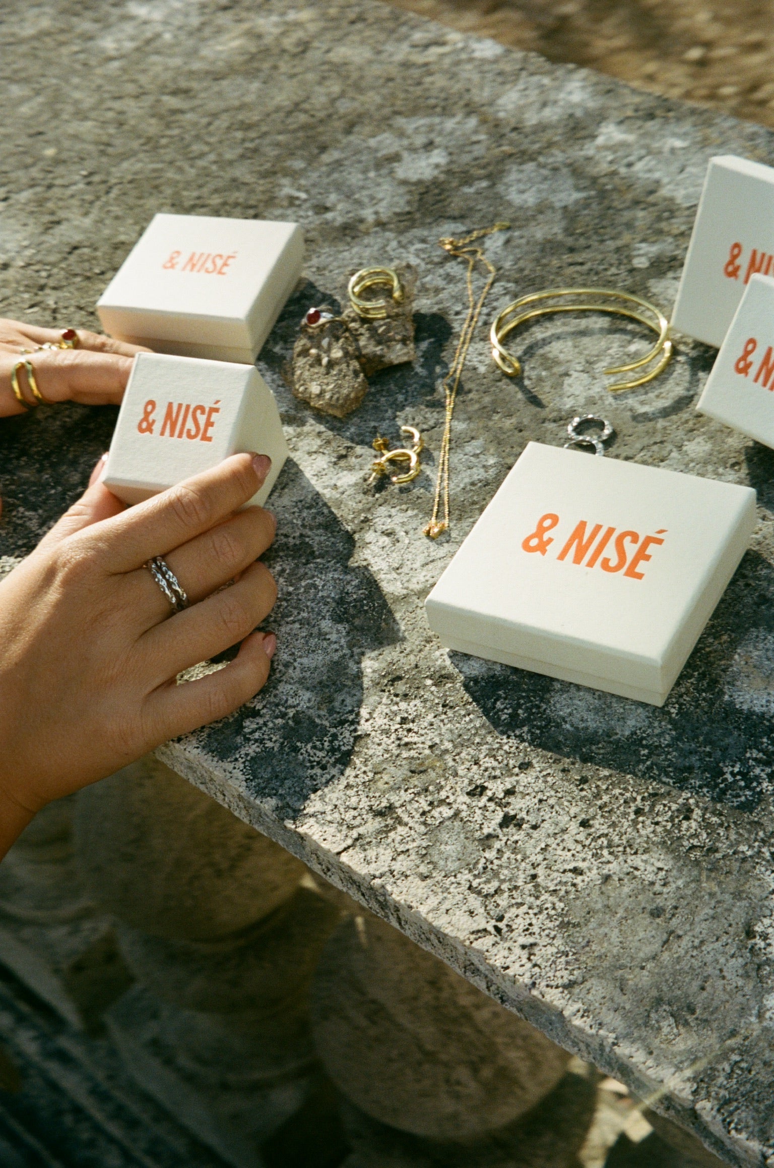 & NISÉ-smyckena är dyrbara juveler, omsorgsfullt handgjorda i 925 silver med ädelmetallbeläggning, som med rätt skötsel kan hålla i många år. Rodium är en ädelmetall i platinagruppen, känd för sin höga hållbarhet, glans och korrosionsbeständighet. Alla silver & NISÉ-smycken har en rodiumbeläggning, som ger dem en långvarig, blank vit finish och skyddar 925 silver från oxidation och missfärgning. Våra guldsmokcken är gjorda av silver med en 1 mikron 18K guldbeläggning och kräver viss omsorg för att bevara den ursprungliga kvalitén.